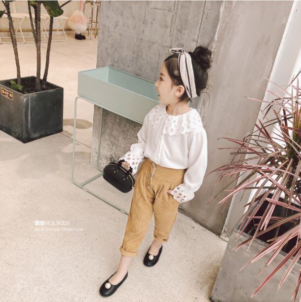 可愛いレースのお袖と襟がコーディネートの主役になるブラウスです。