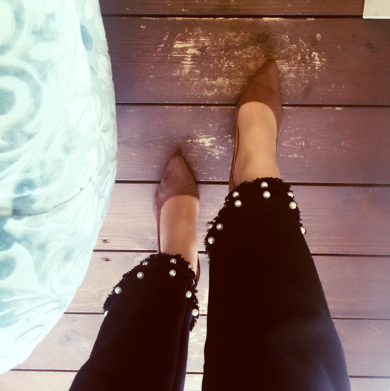 お裾部分にパールが付いたオシャレなクロップドパンツです。