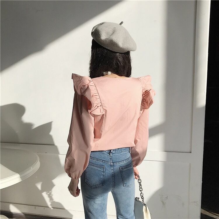 ボリュームのあるラッフルが上品で印象的なシャツです。