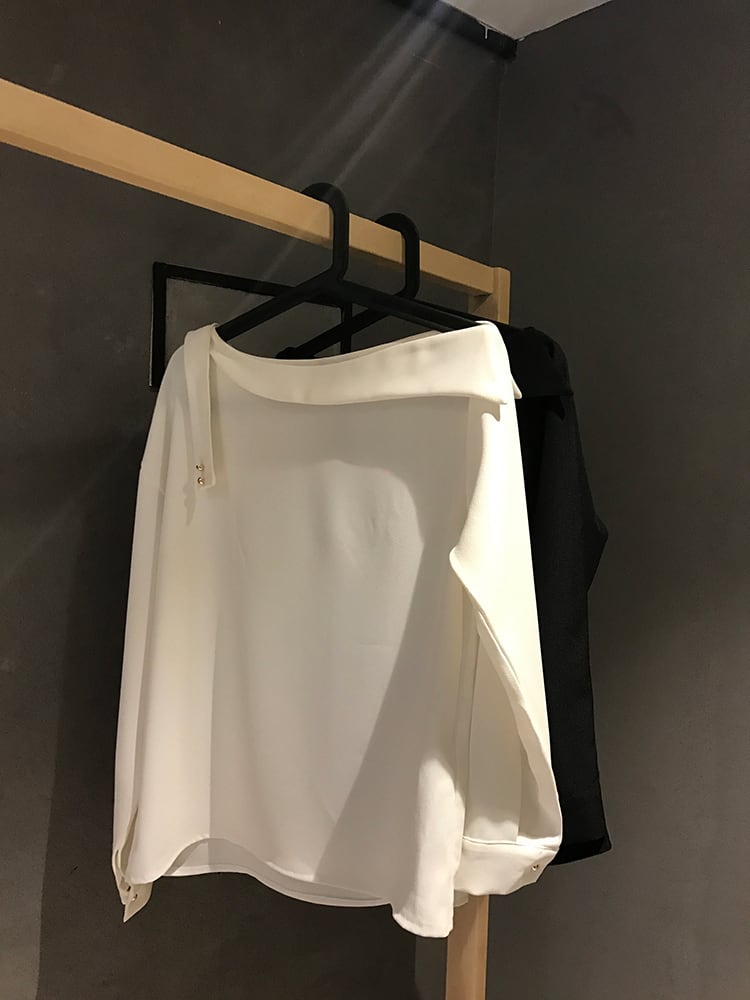 1000円ポッキリ☆2way アシンメトリー シフォン ブラウス/トップス/オフショルダー/2色/2017春夏